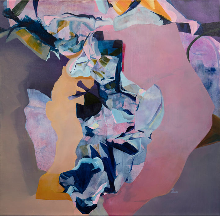 Painting, for me, is a physical and emotional act. My paintings each contain a unique presence of the energy and time of a private performance. They are a layering of abstraction and representation, depiction and embedded emotions, trace and form. The paintings reference my experiences - bodily and spiritual - with loss and love. I start by taking photographs of my bedspread and of roses, simple objects with vast symbolic significance. I cut up the photos and reassemble them into collages that become the inspiration for my paintings. Next, before each painting session, I listen to the information that comes to me as feelings in my body and images in my mind. I find the process to be successful when I can let go and accept the train of decisions I made and am making, fully in the moment in front of me. I strive to allow my expression and all its contradictions to exist without judgment. In doing so, I get closer to an authentic and unedited representation of these universal and deeply personal experiences.